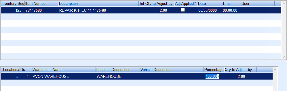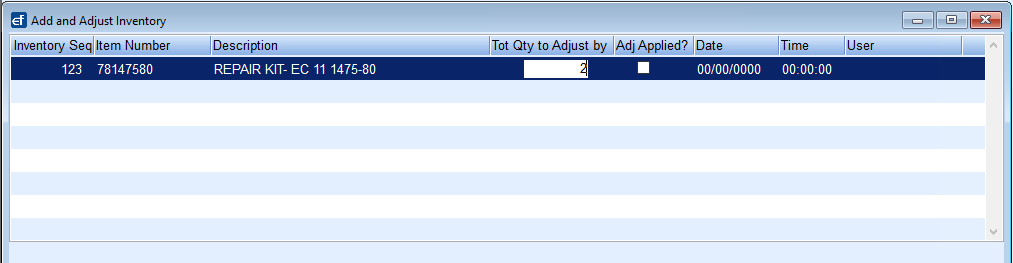 The Add and Adjust Inventory is designed to distribute Non-Serialized Inventory items to several locations at one time rather than having to perform multiple transfers. An example of this type of transfer would take place after a Purchase Order has been received to a shipping location and needs distributed to multiple warehouse locations.