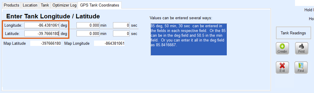 - Enter the Longitude (X) from the website including the negative sign and decimal point.