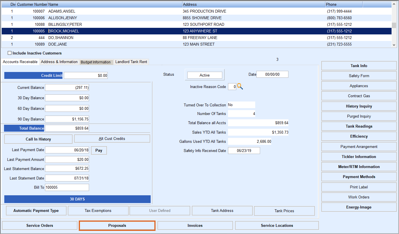 - Select the Customer from the Customer Maintenance screen.