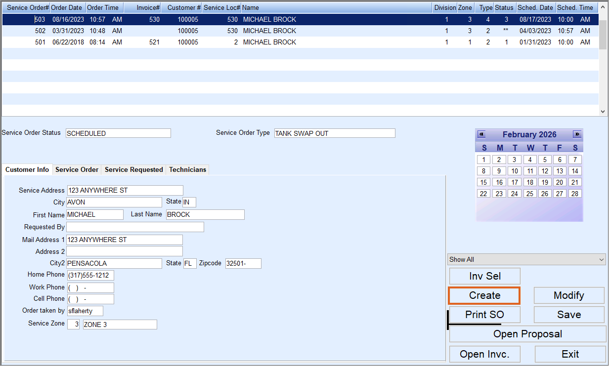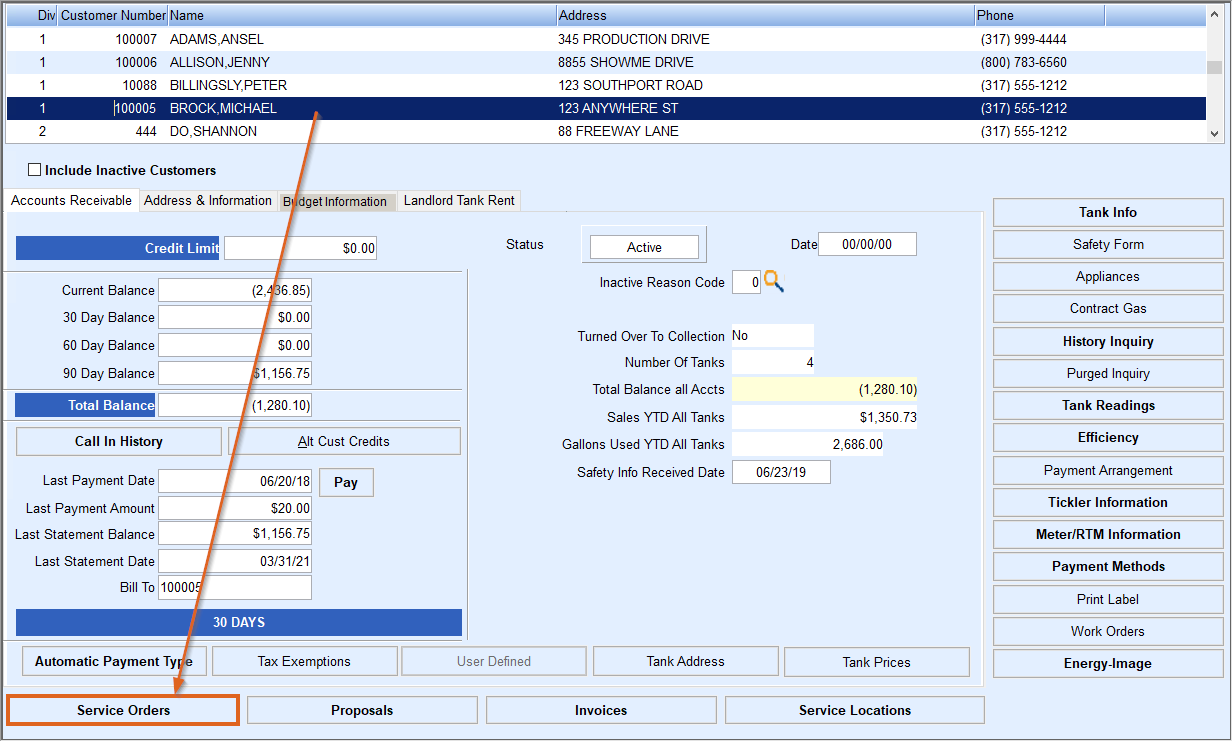 - Select the customer who requested service and choose Service Orders.