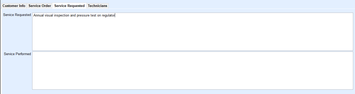 - Enter the Service Requested and any special instructions for the technician as necessary.