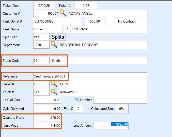 If a delivery billed in a prior month was entered with the wrong price, correct it by issuing a credit for the original invoice and rebilling at the correct price. Do not change the gallons—the delivery was correct. Only the price is being adjusted.