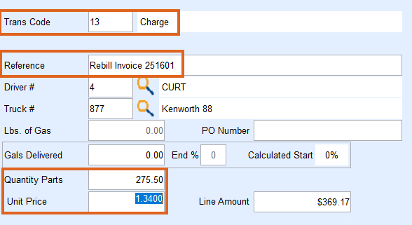 - Set Trans Code to 13 (Charge).