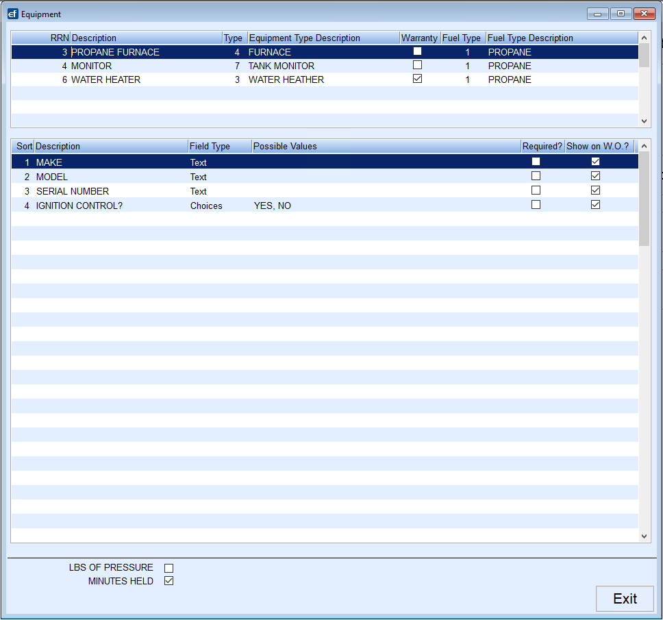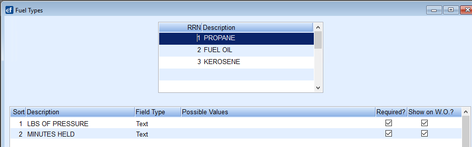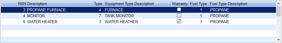 If the type of equipment being serviced uses a Fuel Type such as Propane or Fuel Oil, enter a Fuel Type to tie to the equipment.
