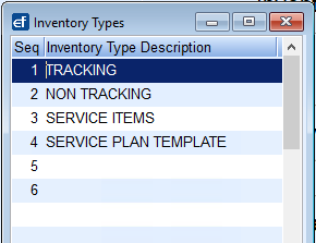 - Seq will automatically be assigned once the Inventory Type is saved.