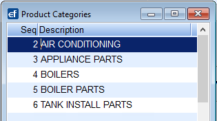 - Enter the Product Category Description and press the Down Arrow or F4 to enter another line item.