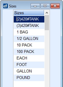 This Maintenance Table is used to track the size of items used in EnergyService such as quarts, gallons, each, etc.