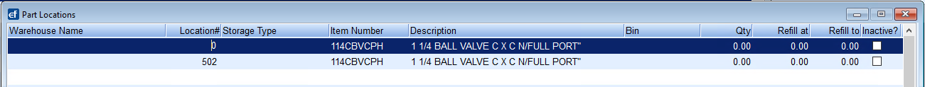 - Press F5 in the Location# field and select the Warehouse or Vehicle for the inventory item.