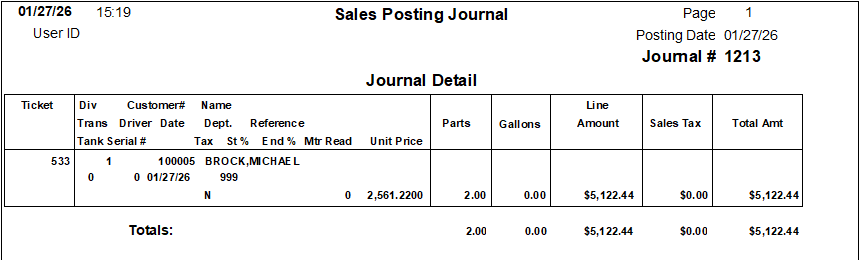 - A journal is automatically written to the Sales Posting screen for this entry and the information will appear on the Customer History screen.