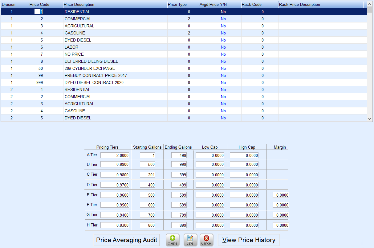 - If using multiple Price Tiers, verify Starting and Ending Gallons are accurate for the tier.