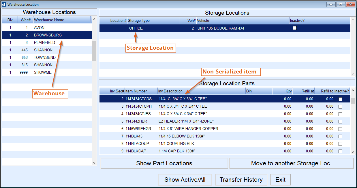 - Select the Warehouse Location where the non-serialized inventory item currently resides.