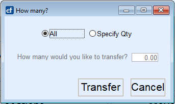- Choose to move All items or a Specific Qty. If a Specific Qty, enter the number of items to move and select Transfer.