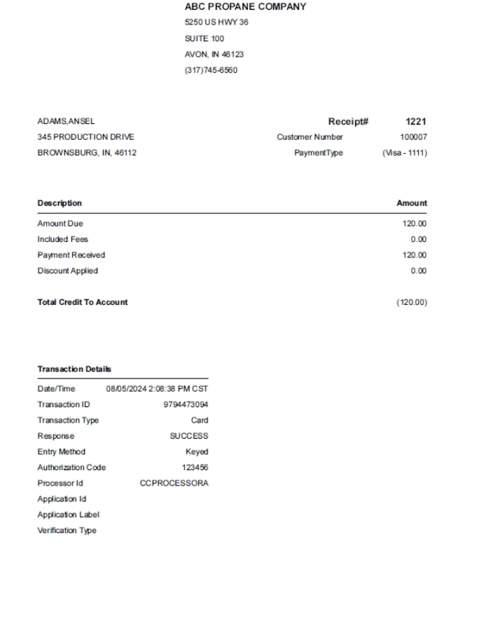 Complete the transaction on the device. Once complete, a payment status box will display in Energy Force. If the status is approved there is an option to print a receipt.