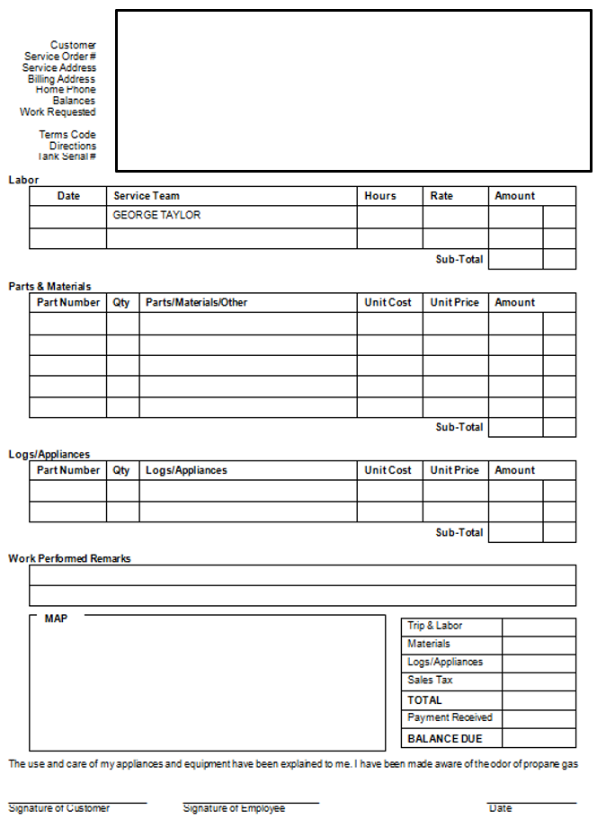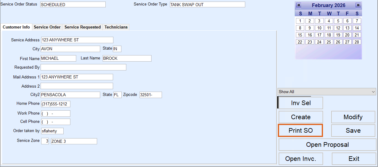 A Service order can be printed for the technician from the service order screen. If the driver is using Mobile-Service, the service order will communicate to his handheld after the next mobile download is performed.