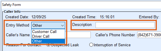 Note: If Other is selected, a Description field displays to enter description and displays on the printed form as well.