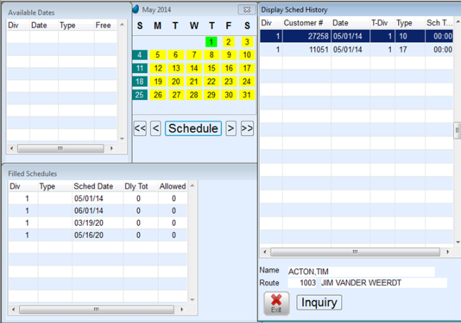 After the cross referencing is done between Calendar Scheduling and Work Orders, start scheduling by pressing F5 while in the Date field on the Work Order screen.